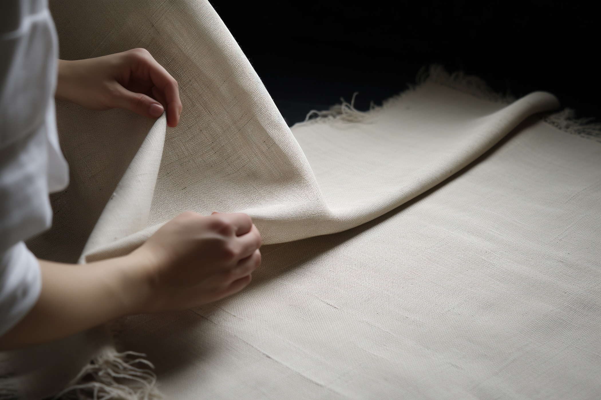 Morgens 7.30 Uhr, die Sonne scheint schon ins Atelier. Karin setzt sich an ihre Nähmaschine von Dürrkopp Adler und plant den Tag. Heute stehen die Vorhänge für eine Kundin auf dem Programm. Karin richtet sich den Stoff zurecht – ein feingewebter Baumwollstoff in einem sanften Cremeton. Sehr stylisch und modern. Nochmals die Masse kontrollieren, die sie mit der Kundin abgestimmt hat, dann geht es los. Erst werden die Seiten oder vertikalen Kanten mit einem Saum versehen, dann die Ober- und Unterseiten. Das klingt einfach, ist aber natürlich nur ein ganz kleiner Ausschnitt der Arbeit, was Karin machen muss, um diese Vorhänge auf Kundenwunsch zu nähen.